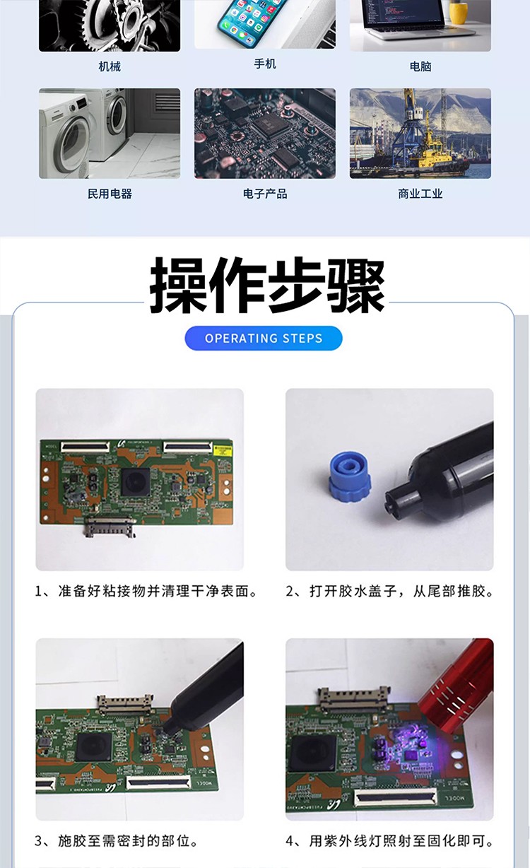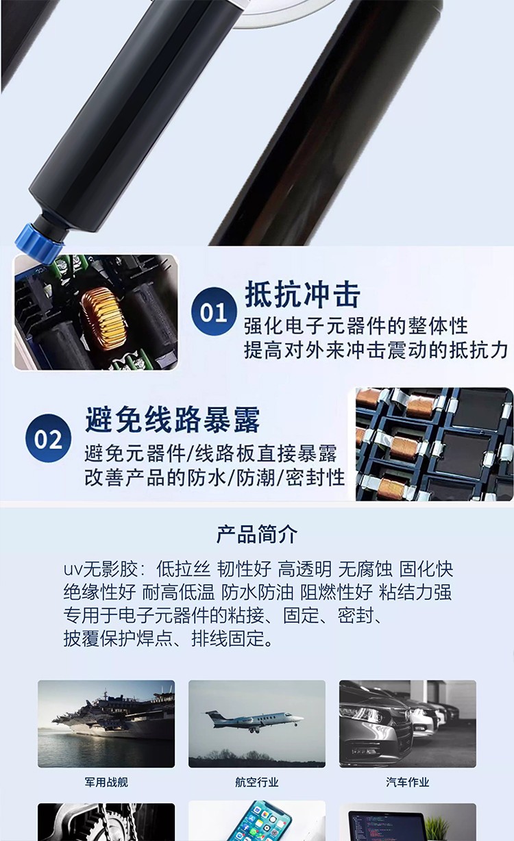 应用行业: 在电子元件封装、医疗器械组装、汽车零部件固定等领域的应用
